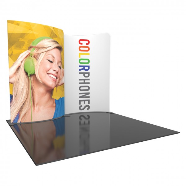 The 10’x10’ Design Series Tension Fabric Display Kit 3 has a premium, aluminum tube structure. Set-up is easy with snap buttons and/or spigot connections, and the frame assembles quickly. The graphics slip over the top of the frame and zipper at the bottom. Weighted stands attached to the bottom of the display frames provide stability once the kit is upright. The two curved components add a stand-out effect for your graphics. Your product, brand, or company is sure to get recognized! A wheeled case is included with the 10’x10’ Design Series Kit 3, making travel and shipping stress-free.