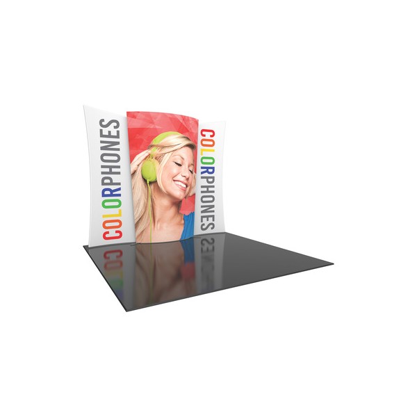 The 10’x10’ Design Series Tension Fabric Display Kit 5 has a premium, aluminum tube structure. Set-up is easy with snap buttons and/or spigot connections, and the frame assembles quickly. The graphics slip over the top of the frame and zipper at the bottom. Weighted stands attached to the bottom of the display frames provide stability once the kit is upright. The non-linear design of the frame construction and the center convex mural add something unexpected to a 10x10 booth space. Your product, brand, or company is sure to get recognized! A wheeled case is included with the 10’x10’ Design Series Kit 5, making travel and shipping stress-free.