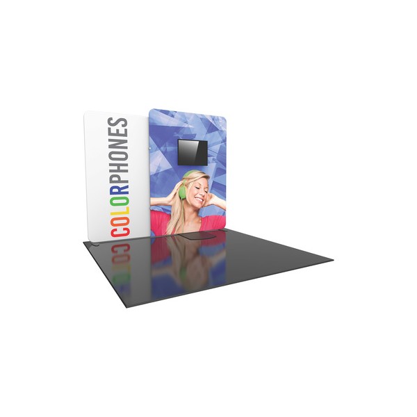 The 10’x10’ Design Series Tension Fabric Display Kit 10 has a premium, aluminum tube structure. Set-up is easy with snap buttons and/or spigot connections, and the frame assembles quickly. The graphics slip over the top of the frame and zipper at the bottom. Weighted stands attached to the bottom of the display frames provide stability once the kit is upright. The monitor mount can hold up to a 75lbs monitor (40’-50’) and creates multiple marketing opportunities. The monitor is displayed on a uniquely designed panel, next to another offset graphic panel. They both add something unexpected to a 10’x10’ trade show booth space. Your product, brand, or company is sure to get recognized! Two wheeled cases are included with the 10’x10’ Design Series Kit 10, making travel and shipping stress-free.