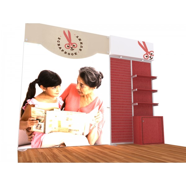 Looking to make a lasting impression at your next trade show? Our 10’ x 10' SEGUE Hybrid Backlit Display VK-1335 is an exhibitor’s perfect choice! Backlit displays are the fastest growing trend in the trade show industry and this Segue display is top-of-the-line in backlit excellence. Silicone Edge Graphics, the gold standard for backlit graphics, make set up easy and offer a professional, stream-lined look. In addition to the stunning backlit wall, a slatwall provides shelving space for showcasing and locking storage. A direct print header gives more space to convey your message to potential clients. The bold and pragmatic display can even be expanded to a 20’ exhibit.