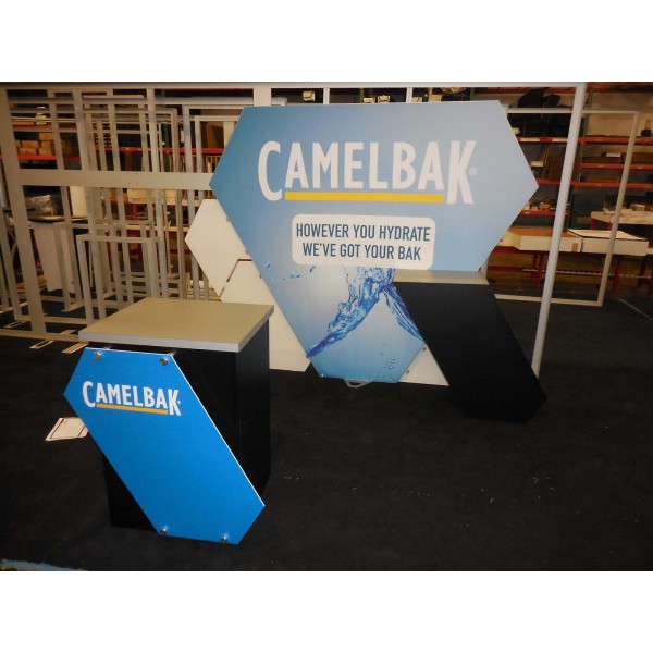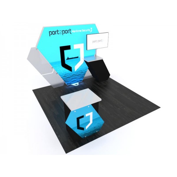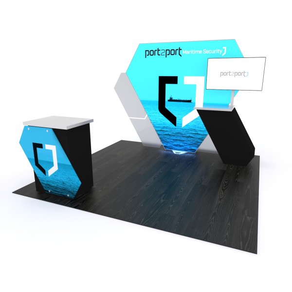 Segue Hybrid Backlit Display VK-1329 will give your next trade show booth a unique look that is sure to spark some serious interest. Backlit displays are the fastest growing trend in the trade show industry and this Segue display is top-of-the-line in backlit excellence. This display kit comes with a distinctively-shaped backlit wall, backwall counter, monitor mount, and freestanding counter with a stand-off graphic for extra visual impact. Truly an all-in-one 10’x10’ booth space solution, the Hybrid Backlit VK-1329 delivers something special that is rare in backlit display kits. LED lighting and high-quality graphics showcase your message on the bold and pragmatic display. Size versatility is another feature as the display kit can be expanded to fit a 20’ exhibit space.