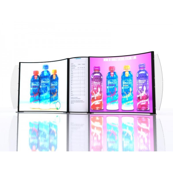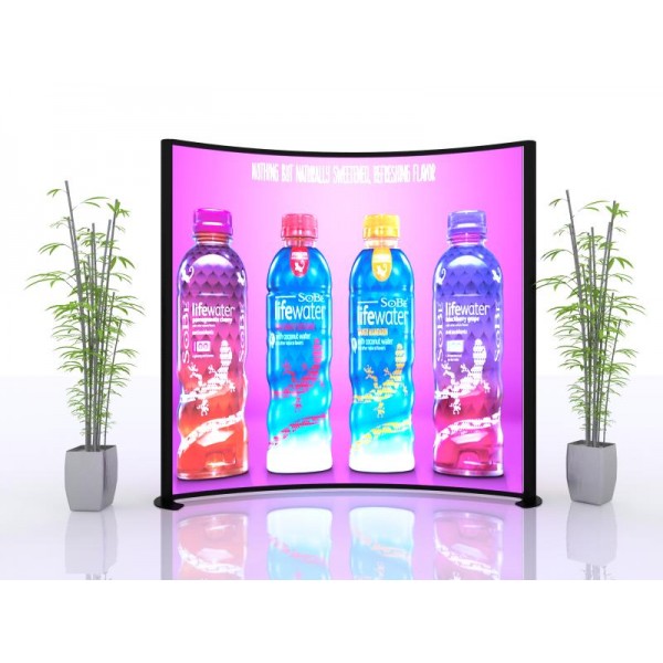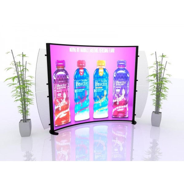 Our 10’ x 10' Segue Hybrid Backlit Display VK-1950 is a perfect combination of form and function for any exhibitor, experienced or amateur. Backlit displays are the fastest growing trend in the trade show industry and this Segue display is top-of-the-line in backlit excellence. The curved backlit wall is impactful enough to stand on its own in a booth space, but also simple enough to allow for accesories and customization. The concave frame design adds a unique element to the common modular LED lightbox form. Silicone edge graphics allow for a streamlined look to beautifully display your message and make it stand out. The premium dye-sublimated fabric graphics deliver high-quality imagery. The lightweight aluminum hardware make set-up and shipping easy. The display kit can also be expanded to fit a 20’ exhibit, view it here.
