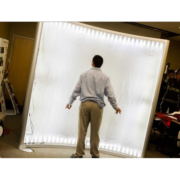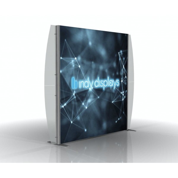 The 10' XVline Round Wing Light Box Display is a simple custom modular framed backlit display system that features rounded accent wings, a premium center seamless TriFab illuminated graphic mural. Indy Displays features the ultra-premium Trifab opaque fabric, to combine our premium LED light box hardware with the HD dye sublimation printing process, that guarantees beautiful and vibrant wrinkle free illuminated graphics. The custom XVline modular encapsulated interior, is lined with durable LED light strips, that light up your brand, booth space, and everything else around it!