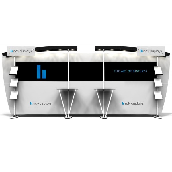 The structure of this 10x20 trade show display is made from durable and lightweight aluminum extrusions. The structure of the Exhibit Line system gives your company a clean, modern look. The exb.1020.1 display kit includes 2 curved laminate canopies that holds 6 halogen lights each and also includes 2 V-leg counters for product placement and brochures. The entire trade show booth can be packaged into three 48.25T shipping cases (47" x 23.5" x 7"). Total weight of the exhibit booth is 154 lbs.
