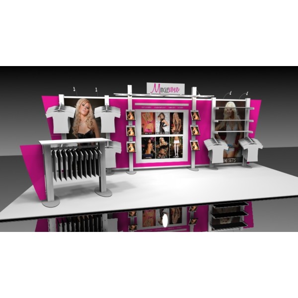 XRline 10x20 Custom Modular Retail Display 1.2 is a portable retail exhibit perfect for trade shows. This custom trade show booth features reconfigurable hardware, large mural graphics, brochure holders, shelving, racks to hang clothing, and a stand alone kiosks for addtional products. This exhibit booth design can be completely customized to create the perfect retail exhibit for your needs. Turnaround time on this display is 10 to 15 business days after artwork approval. For more information contact us at 833-257-6278 or simply submit a Request A Quote email.