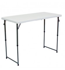 Combine one of Indy Displays standard or customized trade show table covers with an ultra-portable simplistic Trade Show Folding Table. Event booth folding tables are a convenient affordable expo marketing solution! Folding tables provide professional exhibiting space by firmly holding any of our table top display packages and as a strudy structure to cover using a popular dye sublmation printed stretch fabric table covers. Trade Show Folding Tables also provide eye-level product and brochure literature display space!