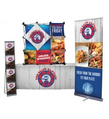 Economy Table Top Display Packages are the ideal choice for exhibitors looking for affordable and simple trade show booth solutions. Our Economy Table Top Display Packages include the essentials for a professional trade show setup, but are still exceptionally portable. Trade show table top displays are popular because of their lightweight frames and functionality in a variety of environments. When not in use at a trade show, table top displays can be used in office or showroom settings. The premium, dye-sublimation fabric graphics can easily be switched out, providing the ability to change images and information in each setting. Informational event signage can be used in office conference rooms, retail spaces, promotional events and conventions as a reference tools. Trade show kits designed with high-impact product prototype images can be displayed in automotive showrooms to highlight innovations, and monthly promotions. Retractable banner stands are included in most tabletop display kits because of their small footprint and versatility. Vertical banner stand displays also provide fast user-friendly setup and affordable price points. Our economy table top display kits can easily fit 8’ or 6’ folding conference tables. If your display booth table requires a trade show table cover that's larger or smaller than the standard sizes available, our team can easily customize the table throw size, ensuring your table top package seamlessly fits your exhibiting space.