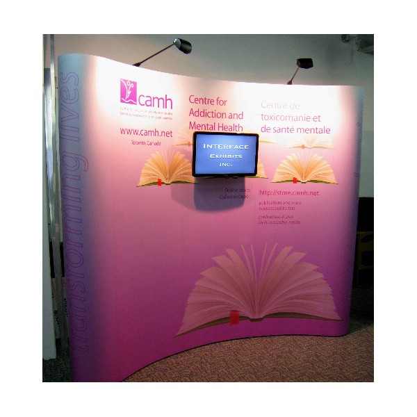 The Expolinc Pop Up Display is undoubtedly a custom modular display system with the hassle of construction and drayage. With this display system you can add a monitor to the lightweight frame to create a 10ft multi-media booth. What's more, this pop up display structure can be reshaped into a 10x20 custom pop up display, or even larger. Indy Displays has many examples of 10x20 custom Expolinc Magnetic Pop Up Display configurations.