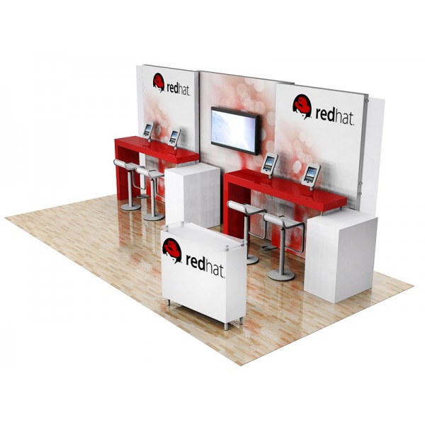 10' x 20' eSmart Hybrid Backlit Display ECO-2071 blends the two hottest trends in trade show displays, backlit and eco-friendly. Boasting a recycled aluminum frame and energy efficient LED lighting, the ECO-2071 20ft portable backlit booth display provides an option for our environmentally-conscious exhibitors. The 20’ backlit wall creates a show-stopping impact, taking your images to the next level with high quality, silicone-edged graphics. All design aspects are eco-friendly, as well. The combination of a large monitor mount and attractive backwall counters create a dynamic aesthetic to provide endless versatility. The 20’ backwall is ideal for additional accessories to fit your needs, from counters, to stools, to iPad stands, all of which are eSmart products and available for purchase. If reducing your environmental footprint is important to you or your clients, look no further than our eSmart Hybrid Backlit Display ECO-2071 for a green trade show display that will take your product, brand, or company to the next level.