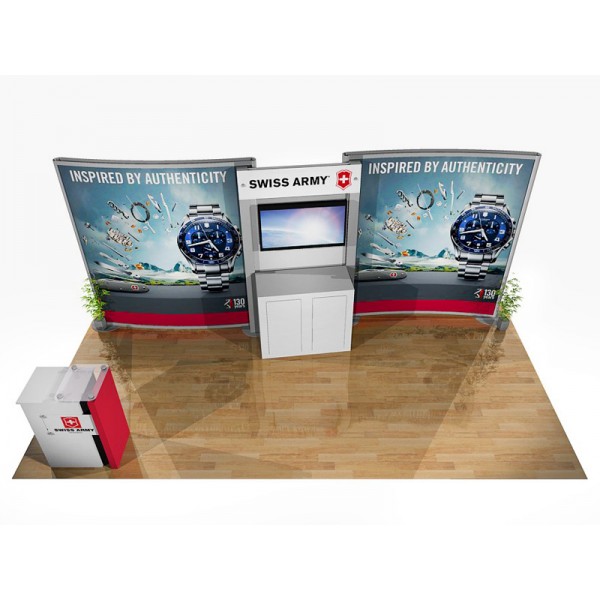 10' x 20' eSmart Hybrid Backlit Display ECO-2061 blends the two hottest trends in trade show displays, backlit and eco-friendly. Boasting a recycled aluminum frame and energy efficient LED lighting, the ECO-2061 20' aluminum modular LED light box back drop display provides an option for our environmentally-conscious exhibitors. The eSmart backlit technology illuminates high definition, custom graphics for a stunning effect. All design aspects are eco-friendly, as well. The combination of a large monitor mount and backwall counter with storage space create a dynamic aesthetic to provide endless versatility. The 20’ backwall is ideal for additional accessories to fit your needs, from counters, to stools, to iPad stands, all of which are eSmart products and available for purchase. If reducing your environmental footprint is important to you or your clients, look no further than our eSmart Hybrid Backlit Display ECO-2061 for a green trade show display that will take your product, brand, or company to the next level.