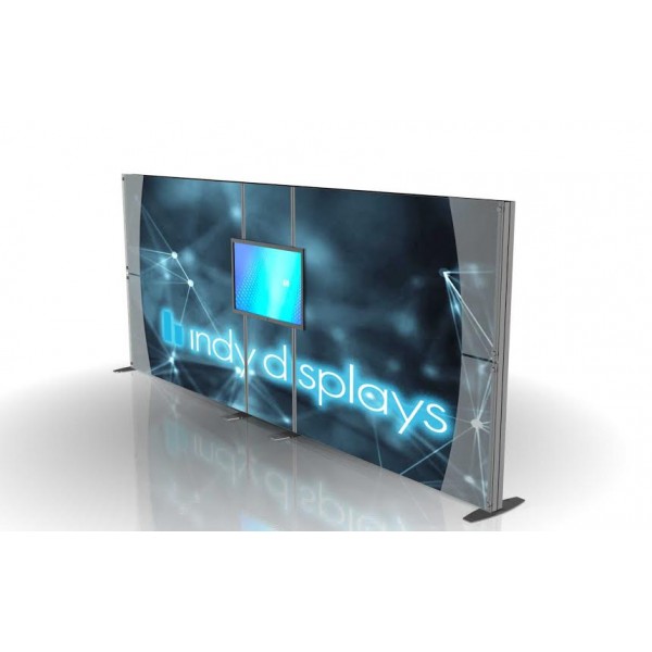 The 10’ x 20’ XVline V2 Backlit Trade Show Display has the capacity for endless possibilities and creativity. The backlit display has three dye-sublimated graphic panels that will stand out at any trade show or event. An LCD monitor mount is attached to the center panel, a perfect spot to showcase promotional media content and attract potential clients into an exhibitor’s booth space. LCD screens are a common and useful trade show accessory, as they can demonstrate products and provide dynamic visual elements. The attached accent wings give the backlit wall a custom and design-forward look. One of the most stand-out benefits of the 10’ x 20’ XVline V2 is the ability to break it down and reconfigure it to a 10’ x 10’ backlit display. That feature, coupled with the capability to easily change out graphics, makes this modular backlit display a smart investment.