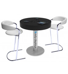 Trade Show Event Charging Stations provide the ultimate convenience for show attendees and event goers. Cell phones are commodity now, and it’s not uncommon for people to carry two or more electronics at once. However, finding places to charge a low battery that doesn’t infringe on valuable time remains a challenge. Adding a Trade Show Charging Table to your trade show display or event space solves a problem almost everyone encounters. Not only will a charging station increase traffic, it will also keep potential clients at your booth longer. All of our charging stations can be printed with high-quality graphics and are available in a variety of finishes.