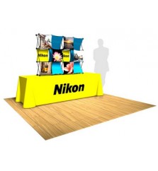 Much more goes into planning an exhibtion than just the trade show display. A table top exhibiting kit allows for simple logistics, booth assembly, and show fees, without sacrificing a professional image. Last-minute events or sales presentations aren’t an issue with table top displays, as the hardware and graphics pack quickly into one user-friendy portable display case. Whether you purchase backlit table top lightbox dislay, or selected a Nomadic popup table top display from our trade show rentals catalog, it's imperative to maximize your branding space by completing your display booth with a trade show table cover. Additional trade show accessories that complete table top kits include literature holders, an individual retractable banner stand, free-standing iPad tablet kiosk stands, and branded promotional giveaways.