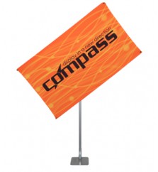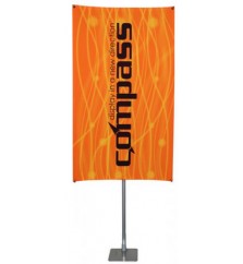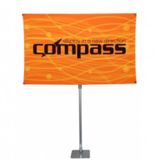 Compass Telescopic Rotating Table Top Banner Stands are one of the most extraordinary portable display stands to hit the market in recent years. Four functional rectangle tension fabric banner graphic sizes are mounted to a varying height telescopic pole. The banner-to-mast mount is an innovative hub that provides the dye sublimation printed banner the ability to rotate at different angles as well as tilt up and down. When the Compass banner is being used behind an exhibition folding table, at a horizontal angle, exhibitors can display a fully branded professional booth space by adding a full color logo printed trade show table cover. The Compass Banner is very simple to use and competitively priced. Multifaceted and unlike any other table top display, the Compass Telescopic Rotating Banner Stand combines the tilt and rotate features to create and eye-catching freestanding trade show back wall or table top display header (placed right behind the table).