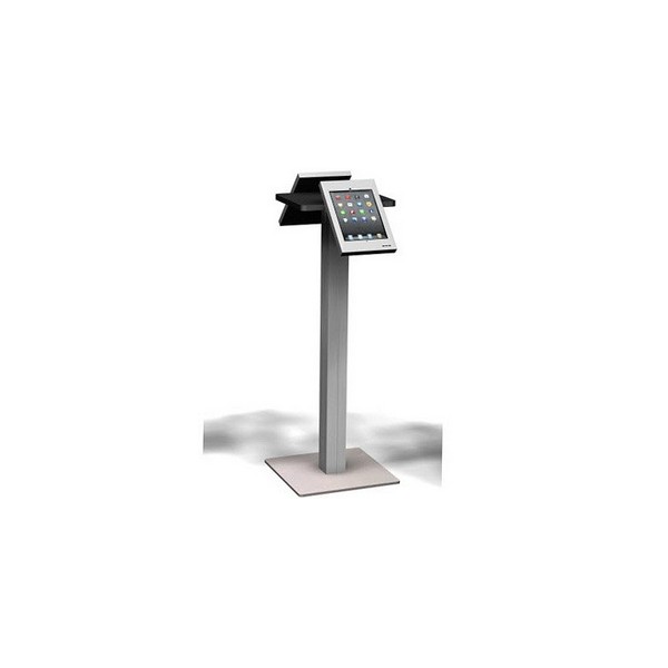 The iPad.S2.2 Kiosk Stand is a cleaning looking iPad kiosk stand that allows you to interact with two iPads, while also having the benefit of a shelf. It has a modern design, is quick and easy to set up, and is light weighing in at 16 lbs. As a security feature, this product comes with a lockcase which is accessible using a key.