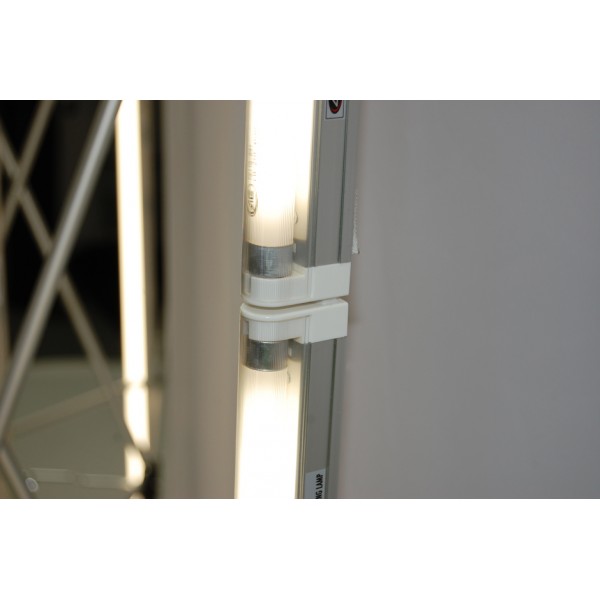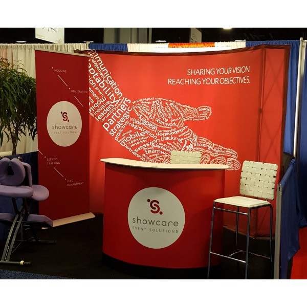 10ft Burst Fabric Curved Popup Lightbox Display is a best selling backlit trade show display. Just like the Flat Burst Popup Lightbox Display, this 10' x 10' turnkey kit was one of the original backlit displays available on the market. This backlit booth package includes a slightly modified version of the well-known 10' curved V-Burst aluminum frame, combined with our premium TriFab fabric. TriFab has quickly grown into the leading dye sublimation printing fabric, that's used on most premium brand-name backlit displays. TriFab's high thread count, provides a heavy opaque and wrinkle-resistant illuminated fabric mural, printed using the latest HD dye sublimation technology. Unlike other fabric popup display kits, our Burst backlit seamless murals will only be printed on industry premium TriFab heavy knit fabric, that prevents popup frame visibility when the display is illuminated!