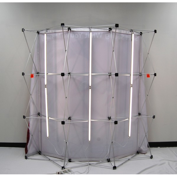 - V-Burst backlit 8'w x 10'h curved popup frame