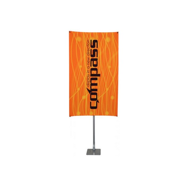 The Compass Display System is one of the most unique telescoping banner stands on the market today. The Compass Kit 2 includes a large 36" x 78" dye sublmation graphic banner. This display kits banner is large enough to fill a 6ft table when placed behind. The Compass Display is not only competitively priced but it's also light weight and inexpension to ship. Combine this display with one of our table cover options to give your booth a complete professional look.