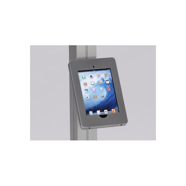 Sacagawea Custom Modular Table Top Display VK-1292 is a modern display design featuring tension fabric graphics and a unique wave canopy. Attached to the frame is one laminate shelf and stand off graphic. The standoff graphic can be custom cut to whatever shape you would like. Additional accessory options can be purchased that include a monitor mount and iPad attachment. The Sacagawea table top displays an be setup by one person in 20 to 30 minutes and packs neatly in its own rotomolded hard case with wheels. Sacagawea Table Top Displays are ideal for recruitment fairs, Chamber of Commerce shows, college events, and business expos.