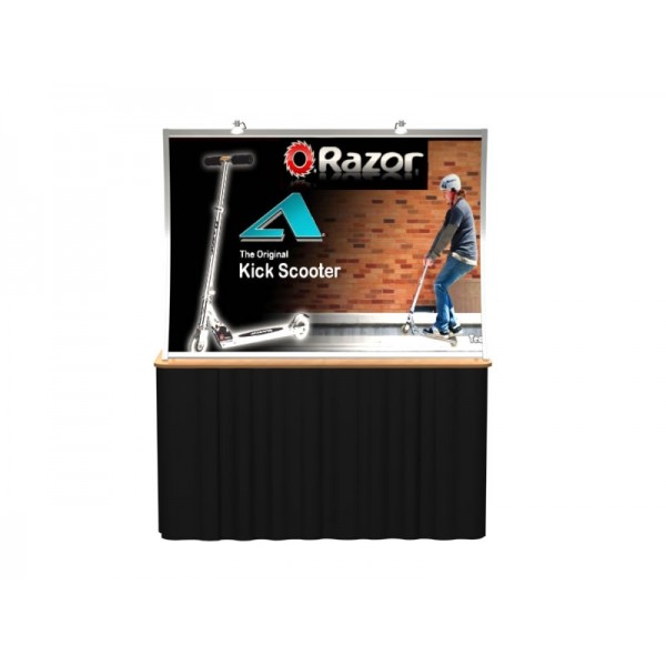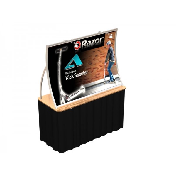 The Perfect 10 Modular Table Top Display VK-1400 is a modern display design featuring a lightweight concave aluminum frame and wrinkle-free tension fabric mural graphic. Accessory options include accent wings, iPad attachment, aluminum brochure holders. Perfect 10 table top displays can be setup by one person in 20 minutes or less and pack neatly into a portable hardcase with wheels. Perfect 10 Table Top Displays are ideal for recruitment fairs, Chamber of Commerce shows, college events, and business expos.