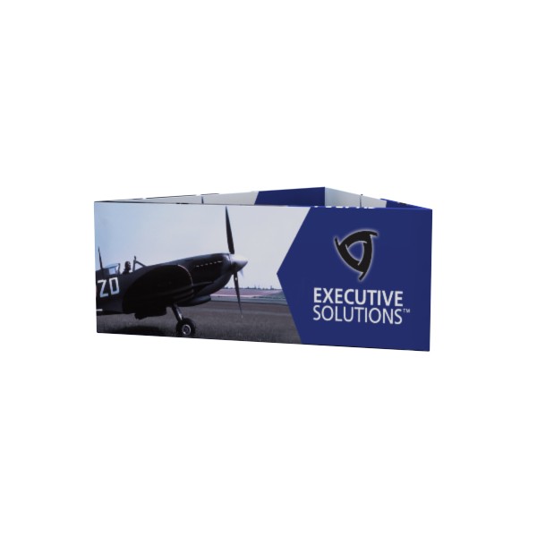 This simple triangle shape will provide a clear line of sight for your brand from three angles and is available in the following sizes (feet x inches); 8x24, 8x36, 8x42, 10x24, 10x36, 10x42, 10x48, 12x24, 12x36, 12x42, 12x48, 15x42, 15x48. Product comes with a soft bag for transport.