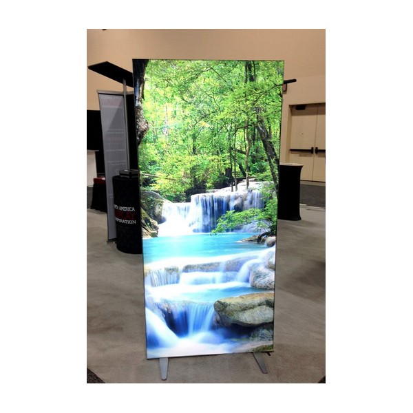 Fabric graphic panels finished with thin silicone strips along the entire back side outer edge, is a modern large format print finishing technology known as "SEG". Light Box SEG fabric panels provide ultra portability and completely wrinkle-free illuminated HD dye sublimation graphics. Our heavy TriFab backlit graphic fabric provides opaque graphic murals without hot spotting or uneven lighting throughout the display stand. These frameless LED backlit display units were designed for exhibitors that frequently transport their booth displays to and from events, but modular LED light box stands also work great for retail branding and short-term promotions, pop up store signage, outdoor events and for modernizing interior office designs. Price includes a single-sided graphic but double-sided graphics can be printed per client request