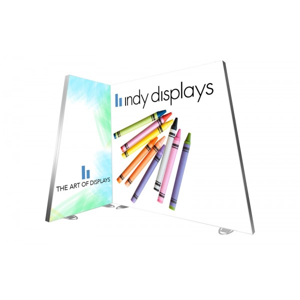 Our 9ft Slant LED Lightbox Display meets the needs of exhibitors in search of a truly unique trade show display. The angled design is constructed using our popular modular lightbox aluminum materials and includes an internal LED lighting system. Backlit trade show displays continue to grow in popularity and this display delivers another stylish version of the trend. The dye sublimation printed fabrics are equipped with SEG technology that easily attaches to the frame. The frame can also be powder-coated to black or white instead of the original silver. The distinctively shaped product is designed to stand alone or join our other LED Lightbox Displays to form various sizes of stunning booth configurations.