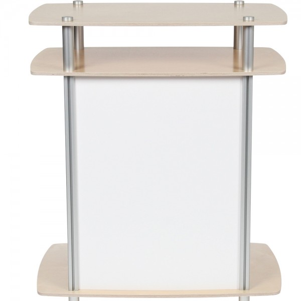 Our Medium Rectangle Modular Counter offers premium quality and ultimate portability. Completely customizable, we have dozens of component combinations to fit your trade show needs. Set-up is quick and easy with the twist mechanism and only takes around 5 minutes! A locking storage compartment adds to the functionality of the Medium Rectangle Modular Counter. All panels can be printed with high quality, color images, or they can be purchased unprinted in black or white. Shelving is available in birch (as pictured), black laminate, white laminate, or plexi-glass, and the option to mix and match shelving is also available. The included, hard-shell cases provide important storage and shipping benefits. The Medium Rectangle Modular Counter is an excellent addition to any booth space, including 10x10 and 10x20 booth spaces, retail environments, and showrooms. The double counter provides a top level countertop for customer interaction, yet also has space for literature and products to be accessible and in-view on the lower level countertop.
