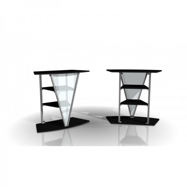 Exhibitline V-lead Pedestal Counter is one of our most unique and innovative trade show display counters. The high-tech design is perfect for startup companies that are looking for a functional, yet sleek trade show display counter. The lower shelves are perfect for keeping printed literature or promotional items, while the large countertop offers multiple uses. Display counters serve as a central meeting area for booth visitors looking to speak with show staff. The front panel of this display can be custom printed to fit any booth design. Whether pairing with our Exhibitline ex1.V 10ft Display or our eye-catching 10'x20' Design Series Tension Fabric Display Kit 7, this portable trade show display counter will fit seamlessly into any of our trade show product lines!