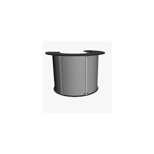 The vertical supports of the counter are durable aluminum extrusions, and the counter panels are made from a thick, rigid plastic. The top is produced with laminated plywood for superior strength. The counter tops come in your choice of 5 laminates and the side infill panels come in your choice of sintra infill panels. The additional option for the infill panels is a full digital direct UV resistant graphic.