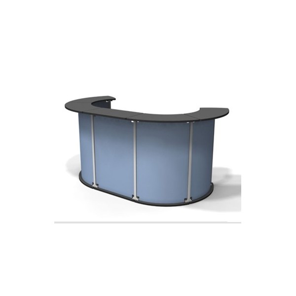 The vertical supports of the counter are durable aluminum extrusions, and the counter panels are made from a thick, rigid plastic. The top is produced with laminated plywood for superior strength. The counter tops come in your choice of 5 laminates and the side infill panels come in your choice of sintra infill panels. The additional option for the infill panels is a full digital direct UV resistant graphic.