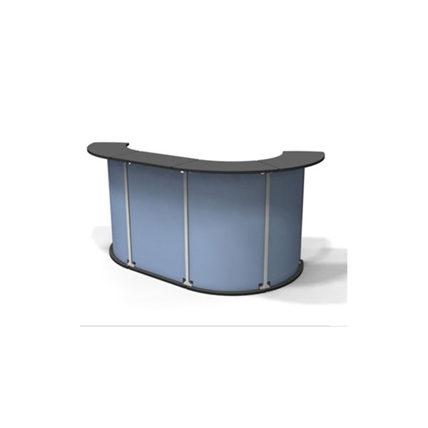 The vertical supports of the counter are durable aluminum extrusions, and the counter panels are made from a thick, rigid plastic. The top is produced with laminated plywood for superior strength. The counter tops come in your choice of 5 laminates and the side infill panels come in your choice of sintra infill panels. The additional option for the infill panels is a full digital direct UV resistant graphic.