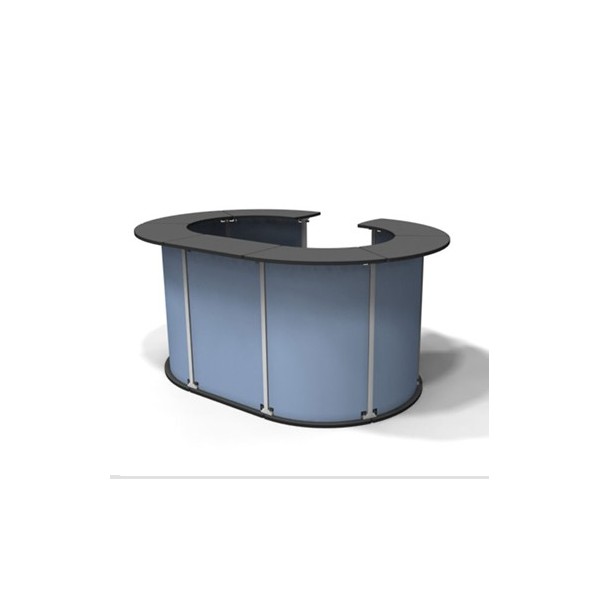 The vertical supports of the counter are durable aluminum extrusions, and the counter panels are made from a thick, rigid plastic. The top is produced with laminated plywood for superior strength. The counter tops come in your choice of 5 laminates and the side infill panels come in your choice of sintra infill panels. The additional option for the infill panels is a full digital direct UV resistant graphic.