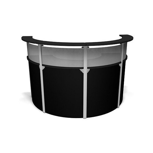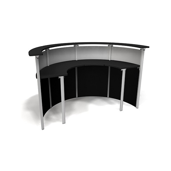 The Exhibitline RD45.4 Reception Trade Show Counter consists of four 45 degree sections and is a great way to stand out at a trade show by giving your booth a trendy unique look. The counter top has several finishes available and the main panels can be printed with graphics to customize the counter even more. The streamlined design lends a formal component to any display set, and it also provides storage space. The entire system can be assembled quickly and without tools. The RD45.4 Counter works perfect with an Exhibitline backwall display or a XRline backwall display. Price only includes the RD45.4 counter, but a hard case can be added for an additional $299.