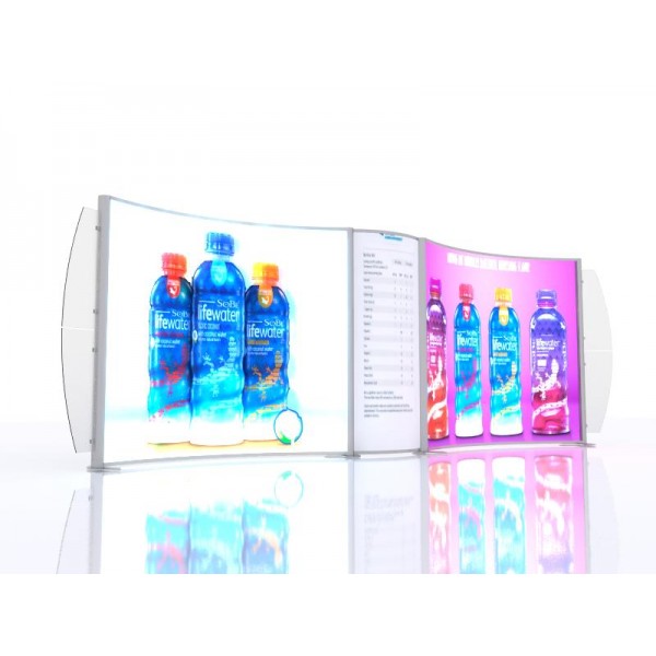 10' x 20' Segue Hybrid Backlit Display VK-2939 will give your product, brand, or company the opportunity to shine in the midst of competition! Backlit displays are the fastest growing trend in the trade show industry and this Segue display is top-of-the-line in backlit excellence. The dual 10’ long backlit walls utilize attached SuperNova™ LED lights that eliminate hot-spotting on the graphics, providing a seamless, professional look. Silicone edge graphics allow for a streamlined look to beautifully display your message and make it stand out, as well as easy set-up. The display kit is also able to reconfigure in order to accommodate a 10’ x 10’ booth space. Packed in molded, wheeled cases, the exhibit includes reusable die-cut foam to protect your display and make packing easy. Segue allows even the most amateur exhibitor to look like a pro with their individually numbered parts and detailed set up instructions. Contact us today and we’ll help you choose the best display configuration for your next trade show!
